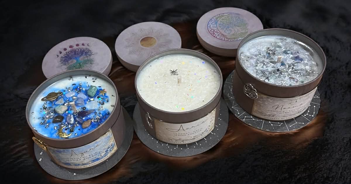 "Jedinečné ručně vyráběné svíčky ze sójového a palmového vosku, šperky z pryskyřice a minerálních kamenů - elegance pro váš domov i styl"