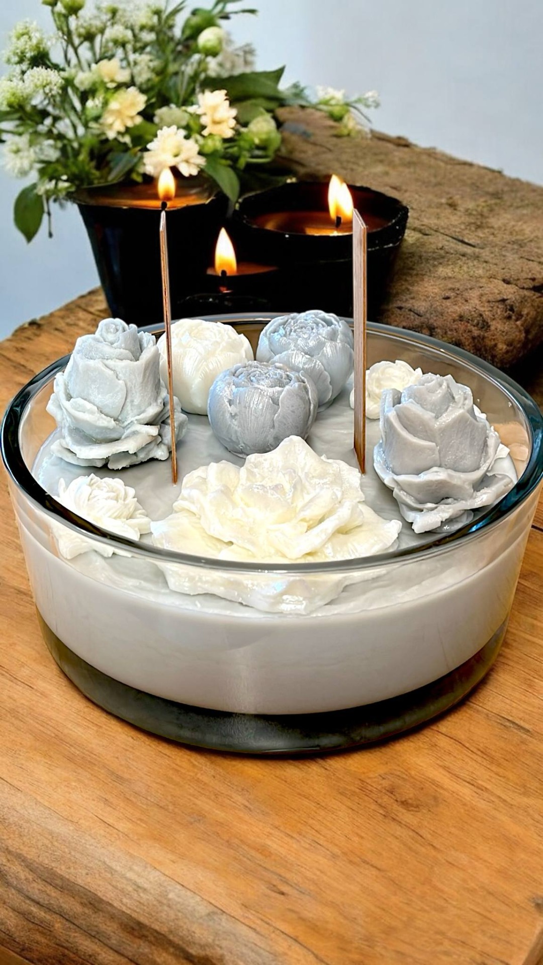 Postupně jsem objevovala různé druhy vosků, zkoušela nové vůně a techniky. Každý pokus byl krokem blíž k tomu, co dnes tvořím srdcem – originální svíčky a dekorace, které v sobě nesou kousek příběhu i energie.