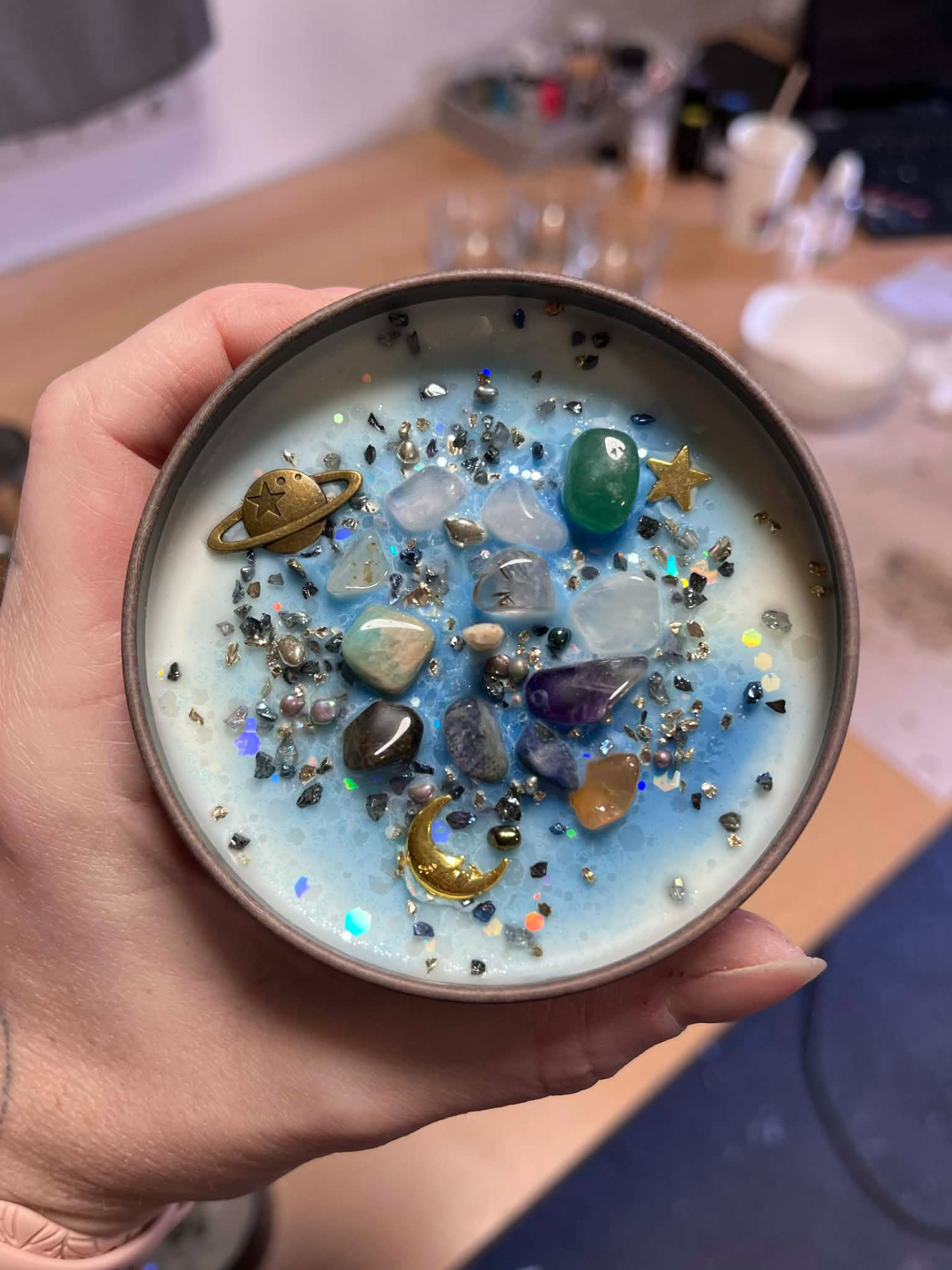 Minerály mě oslovily mnohem hlouběji, než jsem čekala. Už to pro mě nejsou jen krásné kameny ve svíčkách, ale nástroj, jak se zastavit, nadechnout a znovu najít sama sebe. Každý kámen má svůj příběh, energii a záměr – a přesně to chci přenést i do svých výrobků. Učím se s nimi pracovat vědoměji, vybírat je s respektem a skládat kolekce tak, aby vám pomáhaly v každodenním životě.