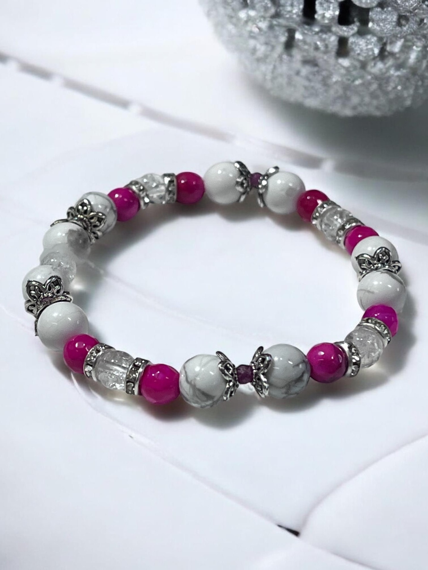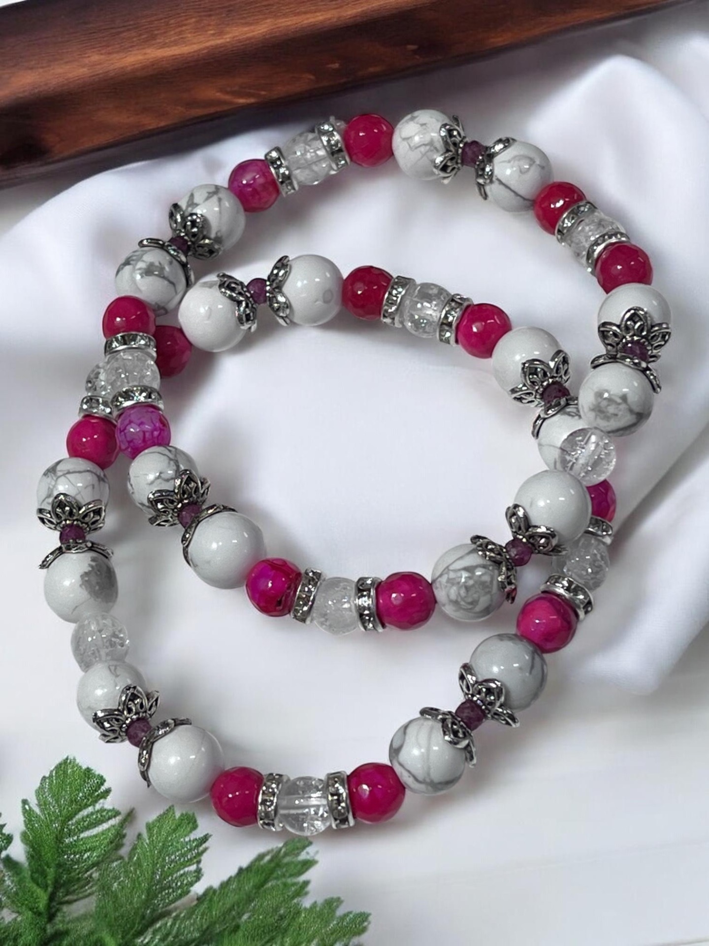 Náramek rubín, praskaný křišťál, achát fuchsiový
