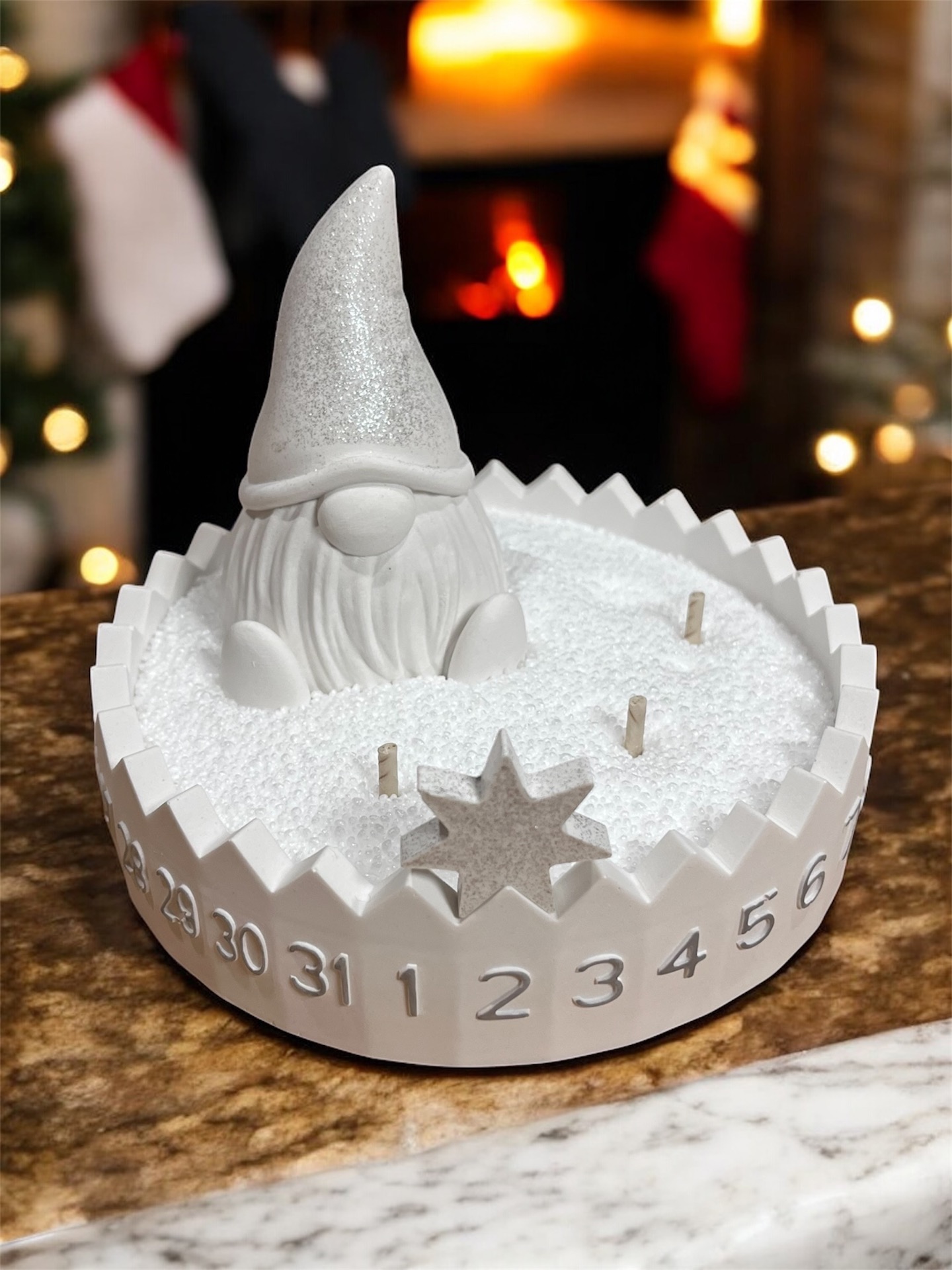 Originální číselný kalendář, který ti zpříjemní adventní i sváteční dny až do nového roku. Celý je ručně vyroben z keraflotu a uvnitř je nasypaný palmový vosk s jemným třpytem.