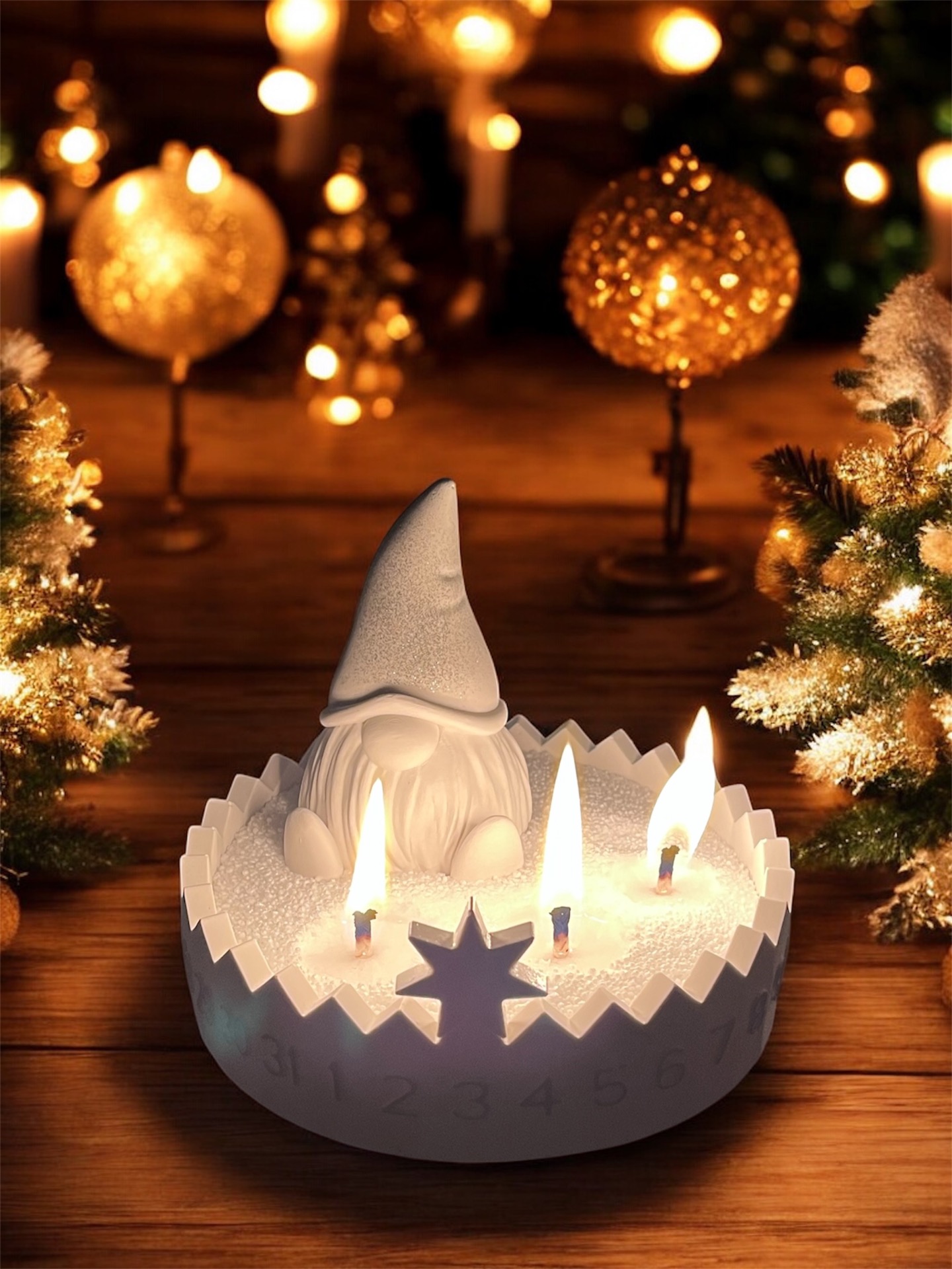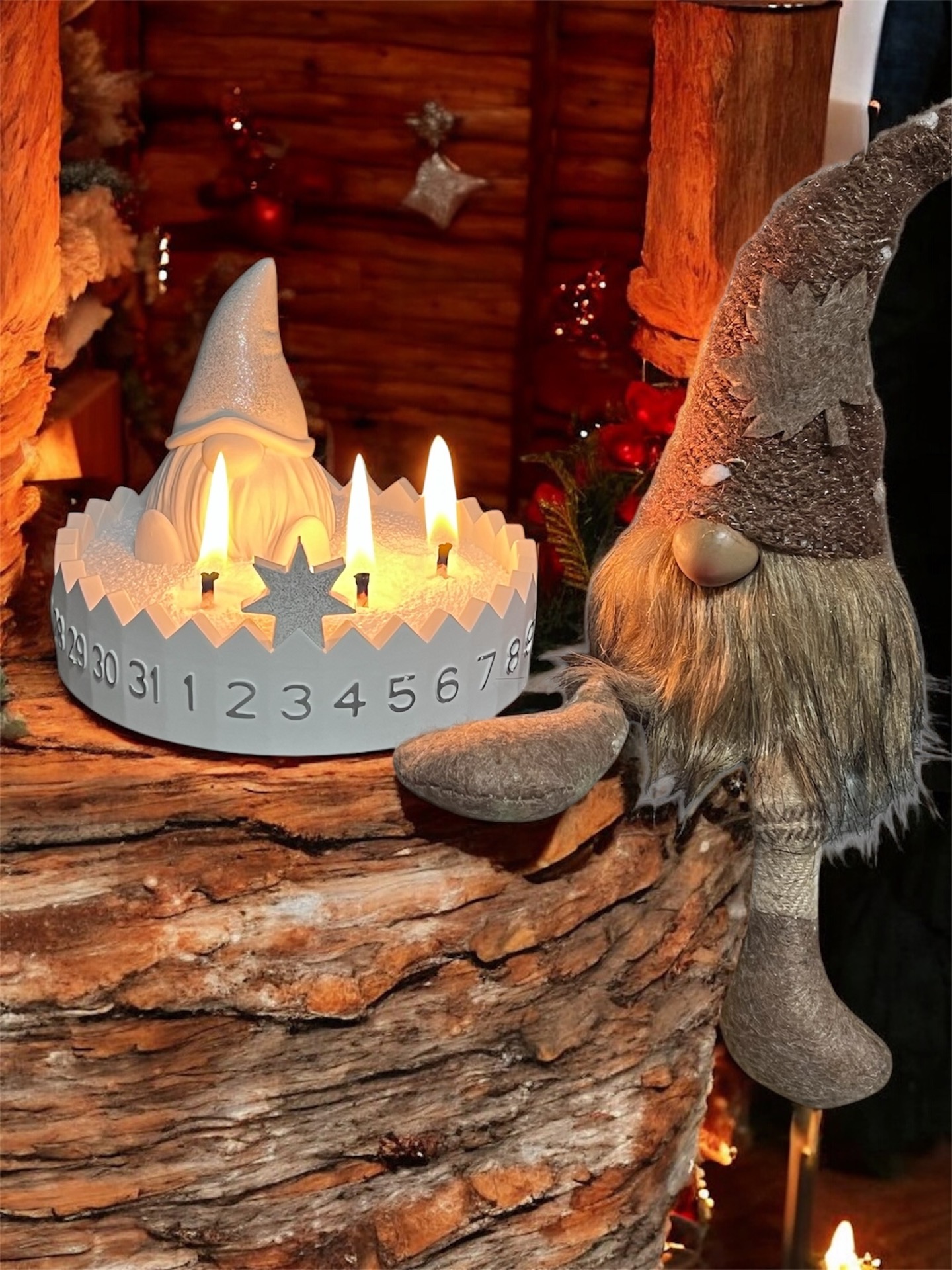 Obsahuje 9 knotů, které můžeš postupně zapalovat – jeden po druhém, podle nálady nebo dnů adventu. Hvězdičku na okraji můžeš posouvat podle čísel od 1 do 31 a odpočítávat tak nejen dny do Vánoc, ale i do konce roku.